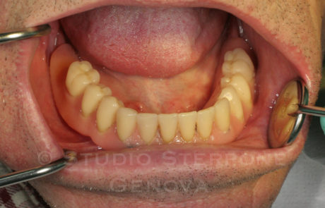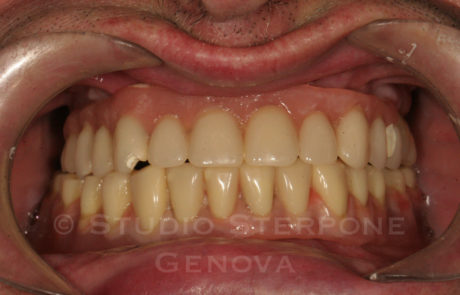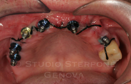 È possibile riabilitare tutta la mascella o la mandibola con svariate tecniche inserendo dai 4 agli 8 impianti per arcata, inferiore o superiore. A seconda della quantità e qualità di osso evidenziata dalle immagini della TAC dentale il Dottore sceglierà quali e quanti impianti inserire. Se la tenuta delle viti è buona, è possibile realizzare una protesi provvisoria fissa chiamata “All on four”, “Toronto Bridge” oppure “Columbus Bridge” a seconda del numero degli impianti e del modo in cui essa viene realizzata. Se la tenuta non è buona bisogna far guarire l’osso e gli impianti e costruire una protesi provvisoria mobile che verrà usata dai 4 ai 6 mesi.